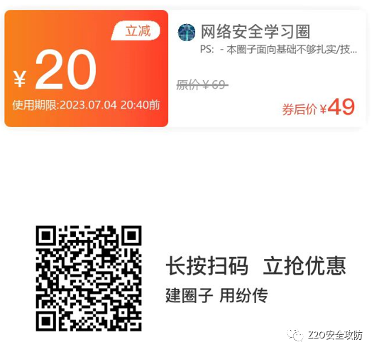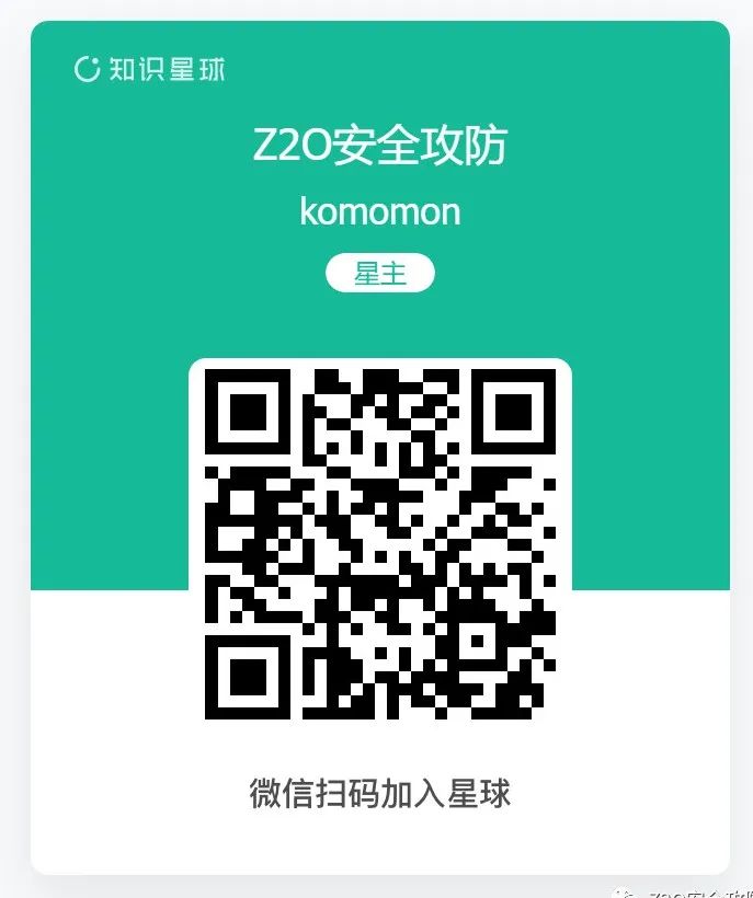 关注公众号回复“加群”,添加Z2OBot好友,自动拉你加入Z2O安全攻防交流群(微信群)分享更多好东西。(QQ群可直接扫码添加)