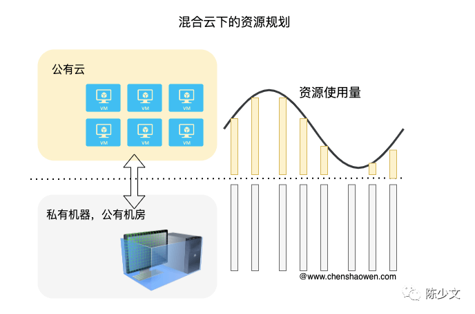 因此,中大型企业才会采用混合云的方案,将一部分应用部署在公有云,一部分应用部署在私有云。这也促成了托管云服务的发展,云厂商提供纳管私有机器的服务,以便能够快速对接自家的公有云服务。