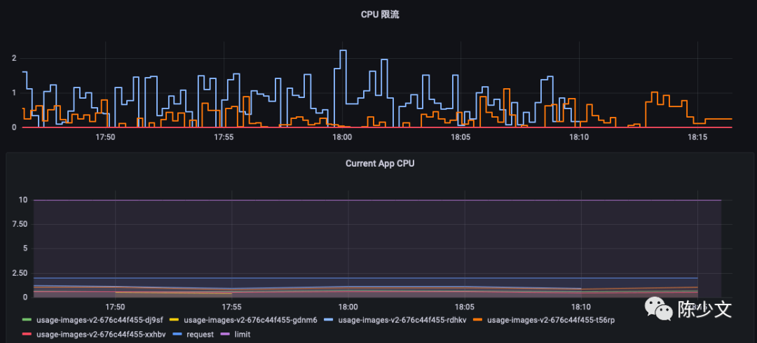 如下图,应用经常会碰到,CPU 使用率很低,但是 CPU 限流很严重,需要不断地提高 CPU Limit,而过高的 Limit 又会导致节点不稳定。同时,有些计费系统,是以 Limit 为基础进行计费的,过高的 Limit 会增加业务成本。