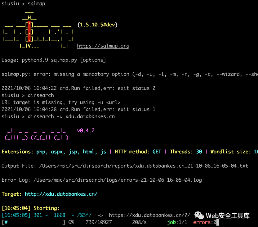 3、在siusiu控制台中运行sqlmap和dirsearch