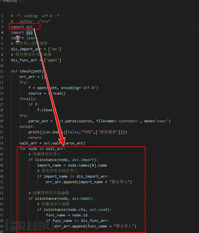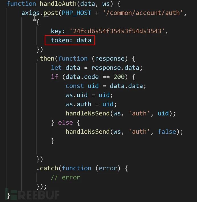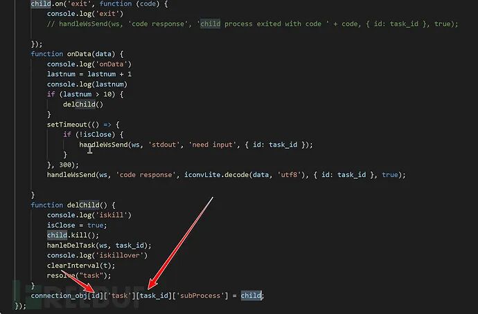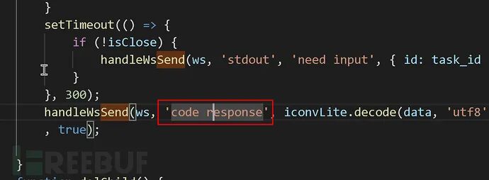 通过查看nodejs源代码。发现该功能模块是通过“前端->websocket->nodejs->执行python”,是这种流程,那么观察验证点,如图:
