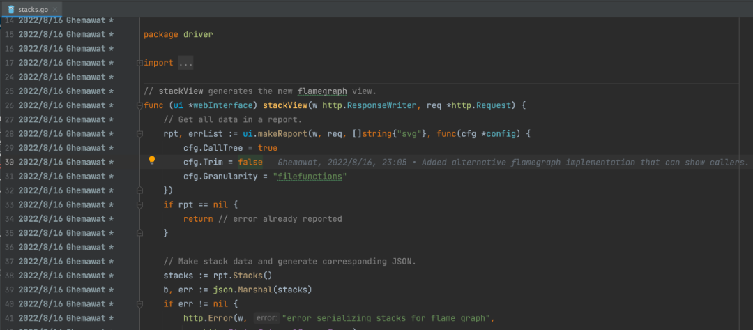 这里用的库是 github.com/google/pprof,查看了这个项目的改动