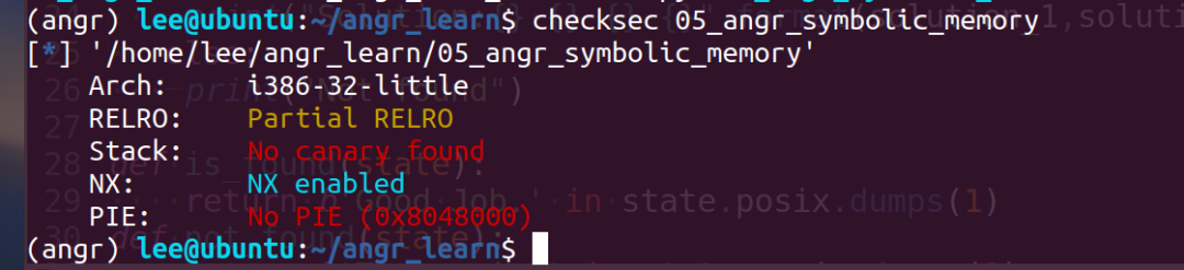 这题以为可以简单解出来,但是忽视了题目考点,点进去check函数,这里的比较是一位一位的比较,所以就会造成有很多可能,一个很大的数量级,angr在遍历过程中会状态爆炸