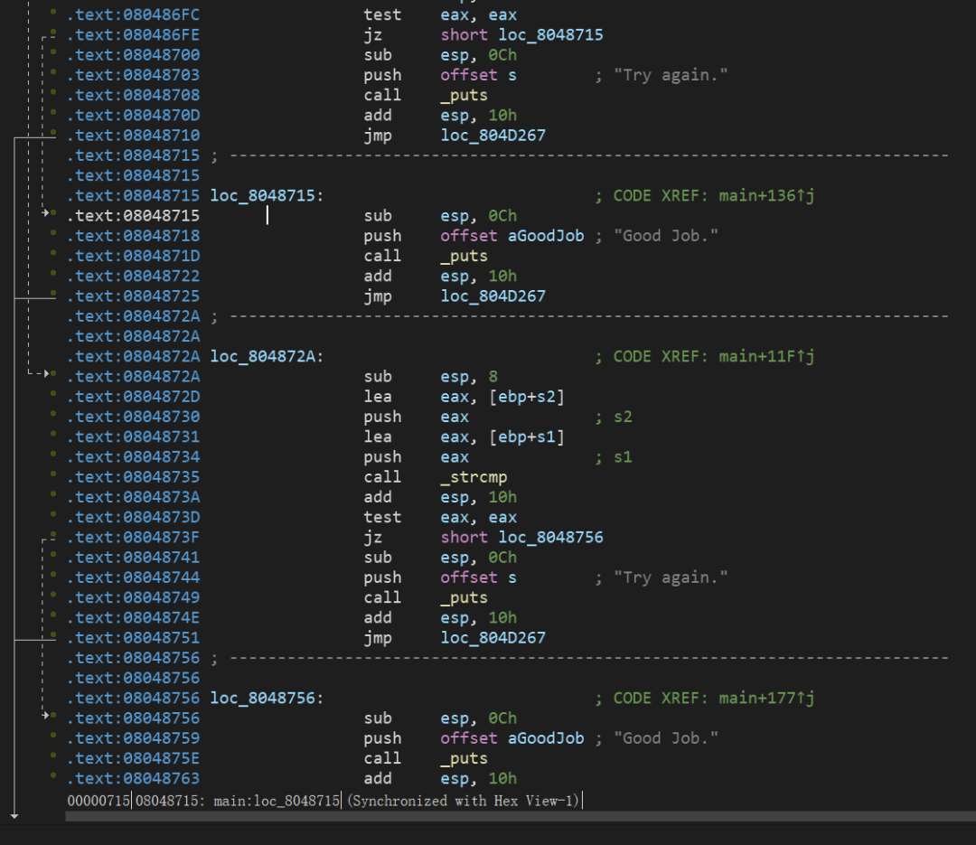 整个函数逻辑流程和00_angr_find一样,只不过加入了个分支avoid_me,倘若angr的explore中不加avoid参数,应该也能跑出来,只不过加了后直接会跳过那个avoid_me的分支,加快速度。