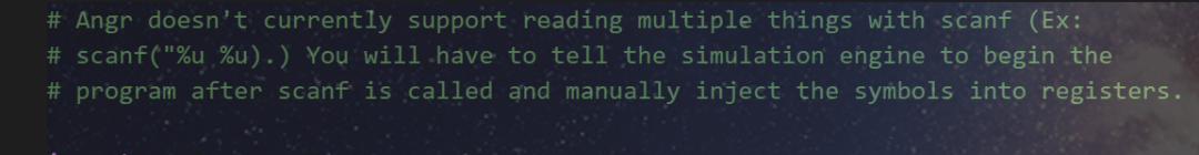 首先这里引入了factory.blank_state,这是创建一个空的状态,因为本题是scanf来读取值,然后需要跳过这个scanf函数的读入,所以看代码: