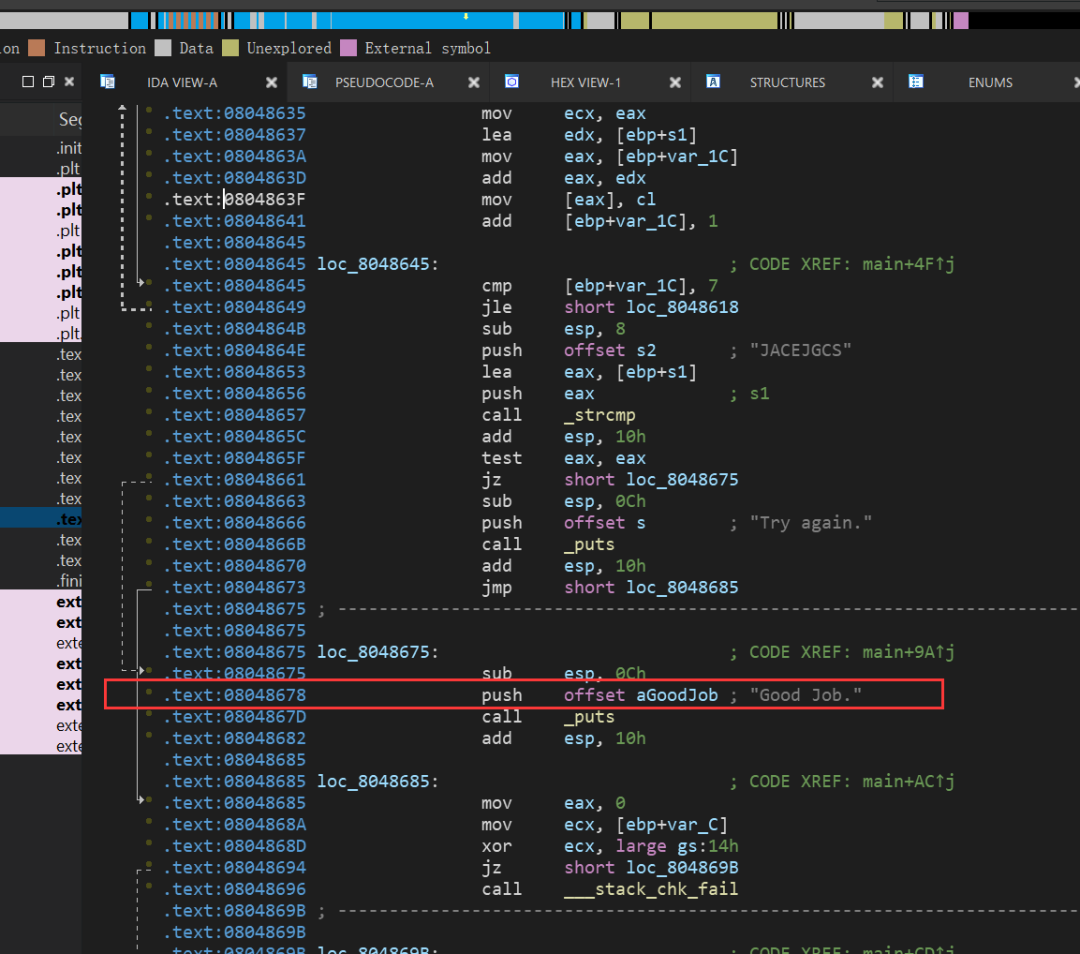 但是通过反汇编出来的代码我们可以大概知道比较的流程是如何,因为函数名也给出了提示信息,所以我们需要人为的添加一些限制条件,使遍历不那么盲目
