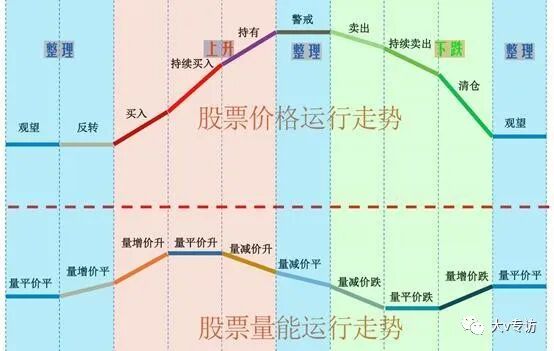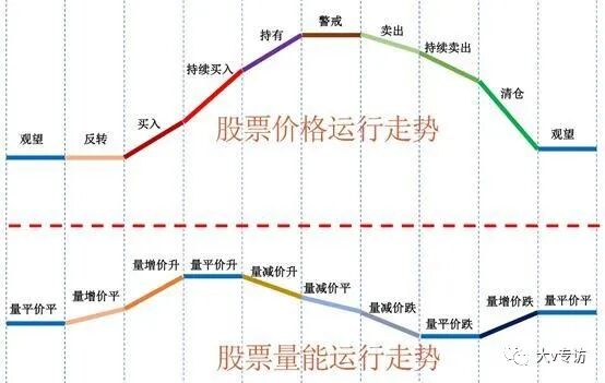 如图所示,是股票运行当中经典的量价关系规律,它完整的揭示了股票在一轮上涨周期当中价格与量能的曲线变化,虽然现实当中很多股票并不一定完全按照这个规律演变,但是它直观的反应了股票这个特殊商品供需变化所导致的量能波动,以及量在价先的变化。