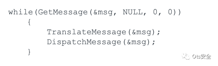 在调用UpdateWindow()之后,窗口完全可见并可以使用。在为 Windows 编写更简单的控制台应用程序时,应用程序会进行显式函数调用以响应来自控制台的用户输入。在窗口应用程序中,用户通常可以通过输入文本、单击按钮和菜单或仅通过移动鼠标来与应用程序交互。这些操作中的每一个都有自己的特殊功能。为实现这一目标,Microsoft 实施了一个事件驱动系统,该系统将来自用户输入(例如,键盘、鼠标或触摸)的消息中继到每个应用程序中的各种窗口。这些消息由每个窗口中的函数处理,称为窗口过程。Windows 为每个线程维护一个消息队列,它将中继任何影响窗口状态的用户输入事件。Windows 然后将这些事件翻译成消息并将它们放入消息队列中。应用程序通过执行类似于下面图 5 中的代码来处理这些消息。![]()