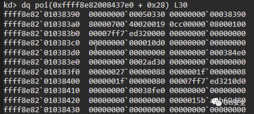 上图是父tagWND ,可以看到handle(offset 0x00)和下面复制的tagWND一样。您还可以看到父结构具有内核地址,而用户模式安全副本只有用户模式地址。最后,请注意父tagWND+0x28是指向子tagWND副本地址的指针。
