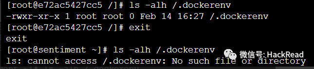 docker下默认存在dockerenv文件,而非docker环境中则没有