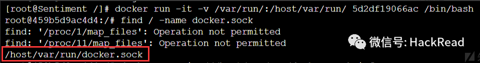 docker run -it -v /var/run/:/host/var/run/ 5d2df19066ac /bin/bash