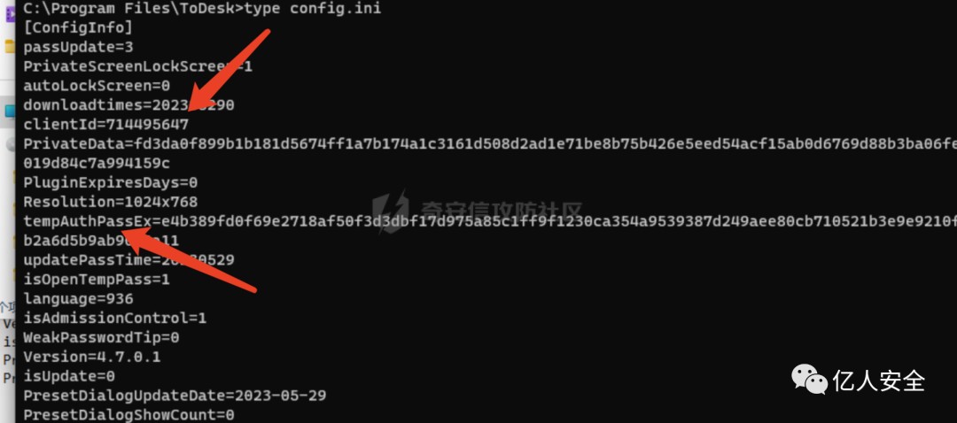 这里还是和前面的向日葵一样,可以进行配置文件的窃取,这里的默认安装路径(C:\Program Files\ToDesk\config.ini)