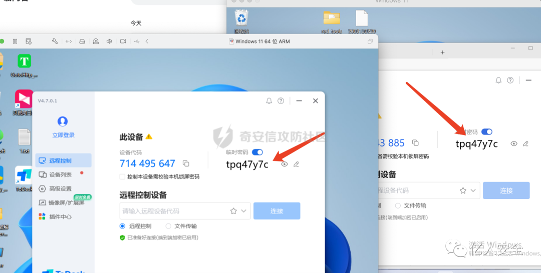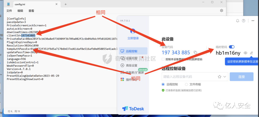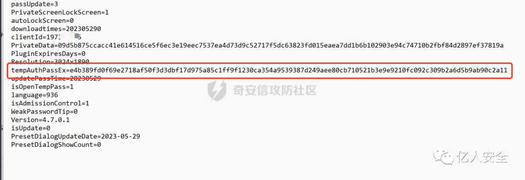 这里咱们可以攻击机安装todesk,然后读取到config.ini中的配置文件,然后和攻击机进行替换即可。这里我虚拟机假装是受害机,读取出来,然后攻击机把tempauthpassex进行替换。