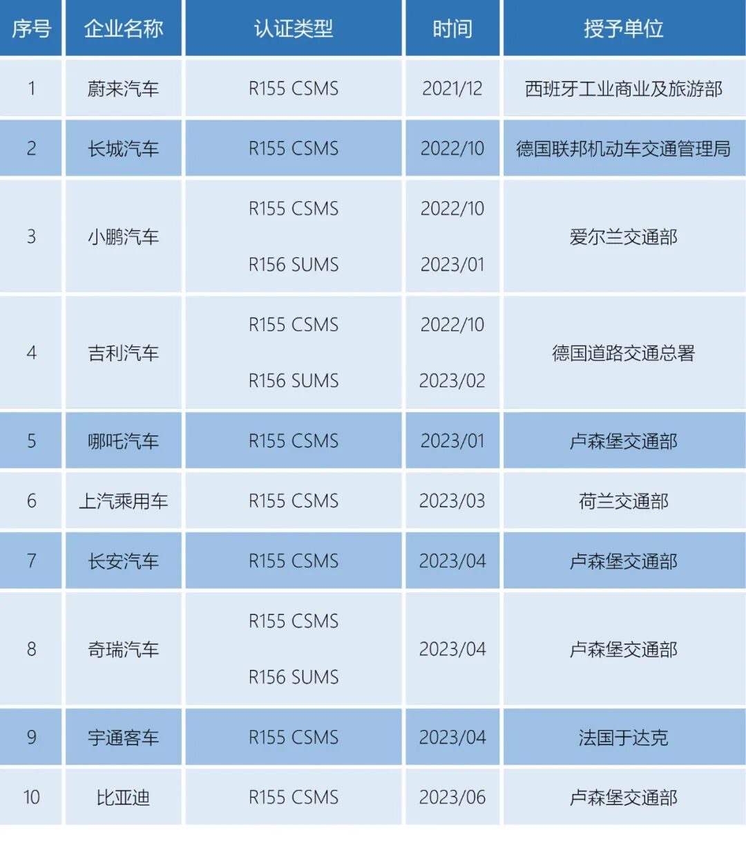 R155认证1年倒计时,国内哪些车企拿到了海外市场关键“通行证”?