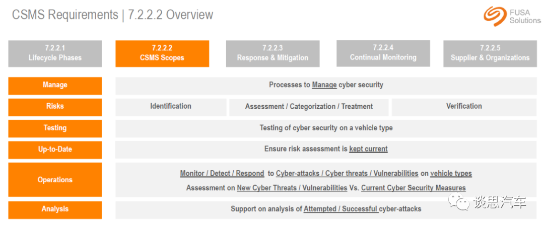 需要注意的是,虽然这两项法规的认证主体是汽车制造商,但合规的压力是施加于整个汽车供应链的。如R155中的7.2.2章节中,就要求主机厂证明对供应商、服务提供商、子公司的管理均符合“7.2.2.2”的要求,并对他们携带的风险采取相应的措施。