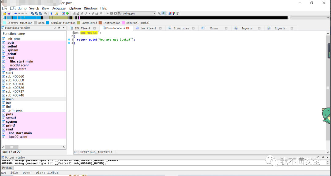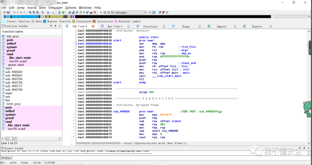使用ida pro打开程序,注意,需要使用64位的ida pro