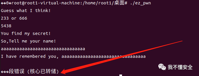 我们可以看到,在这段代码中存在栈溢出漏洞,因为 read 函数没有限制输入字符串的长度,而 buf 变量只有 0x50(80)个字节大小,如果用户输入的字符串超过了这个长度,就会导致栈溢出,覆盖掉其他重要的数据,但是很奇怪,笔者尝试实际上输入32个字节的内容就会造成溢出的情况