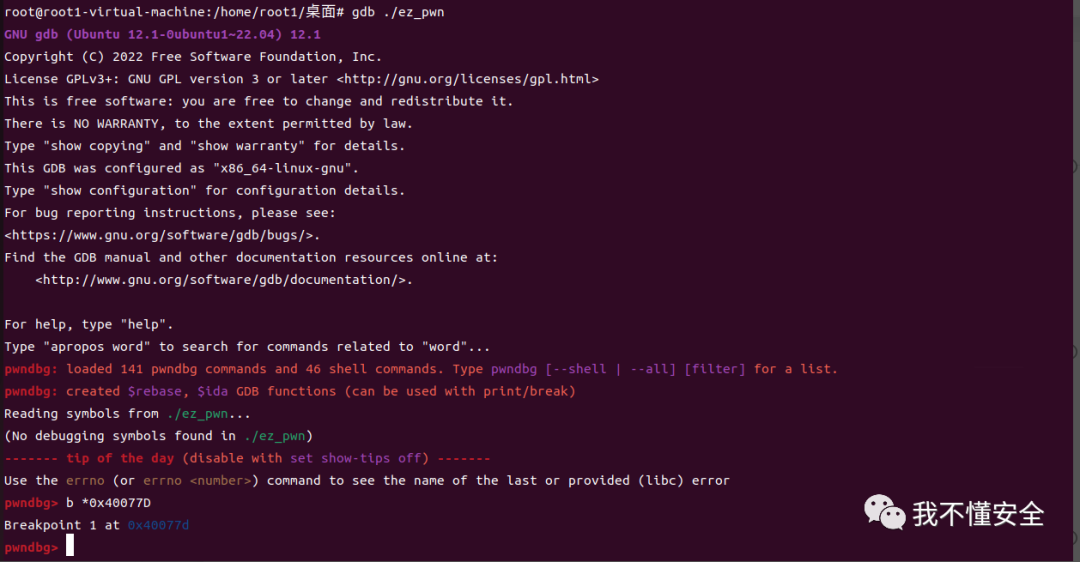 我们使用gdb对其进行动态调试,这样的话不需要静态分析偏移量