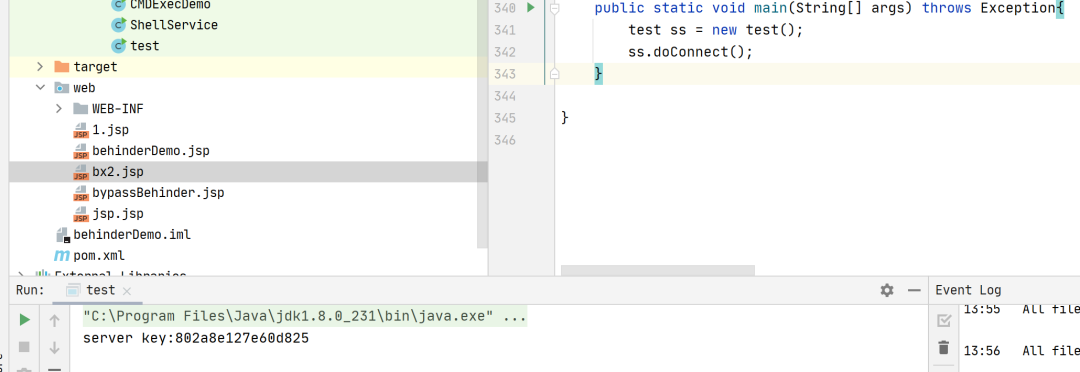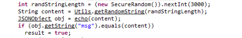 2、环境为jsp,生成随机字符串content通过echo方法发送给服务端,payload加密使用的key为1中生成的key,以服务端返回值与content是否相等来判定客户端key是否正确;