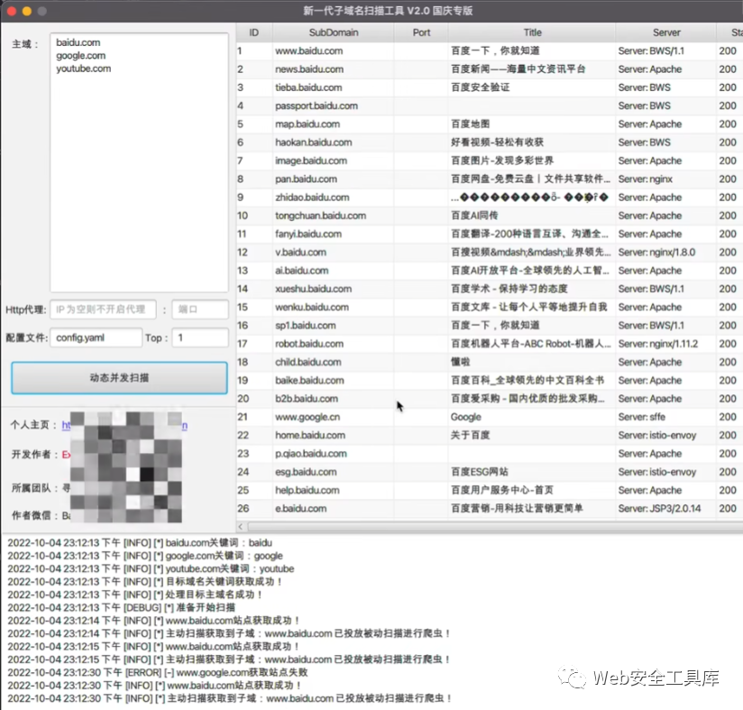 0x01 工具介绍SubAps是新一代子域嗅探工具,可以全网爬虫获取子域,以数据库作为字典进行计次,提高准确率和效率。0x02 安装与使用1、主动扫描指的是通过从数据库读取Topxx(指定)数量的字域