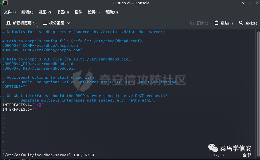 将其中的INTERFACESv4=""更改为INTERFACESv4="at0"