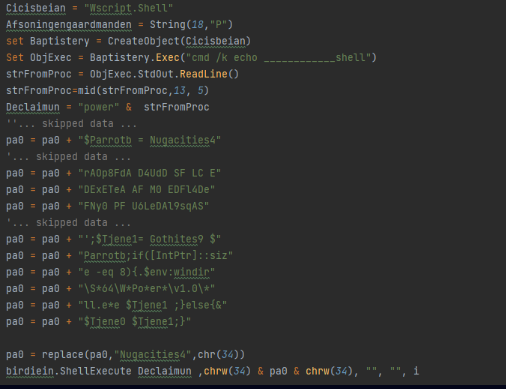 GuLoader使用各种沙盒逃避技术、代码混淆和多层加密来对抗安全产品。GuLoader开发人员不断改进反分析和反调试技术。今年我们还看到了一个新技巧的使用:将加密的shellcode移动到云端,并使用VBScript下载shellcode。因此,受害者会收到一个VBScript文件,该文件比.exe文件更具有迷惑属性,也不太可能触发警报。