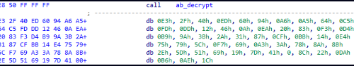 与字符串不同,解密密钥存储为解密函数后面的常规字节序列: