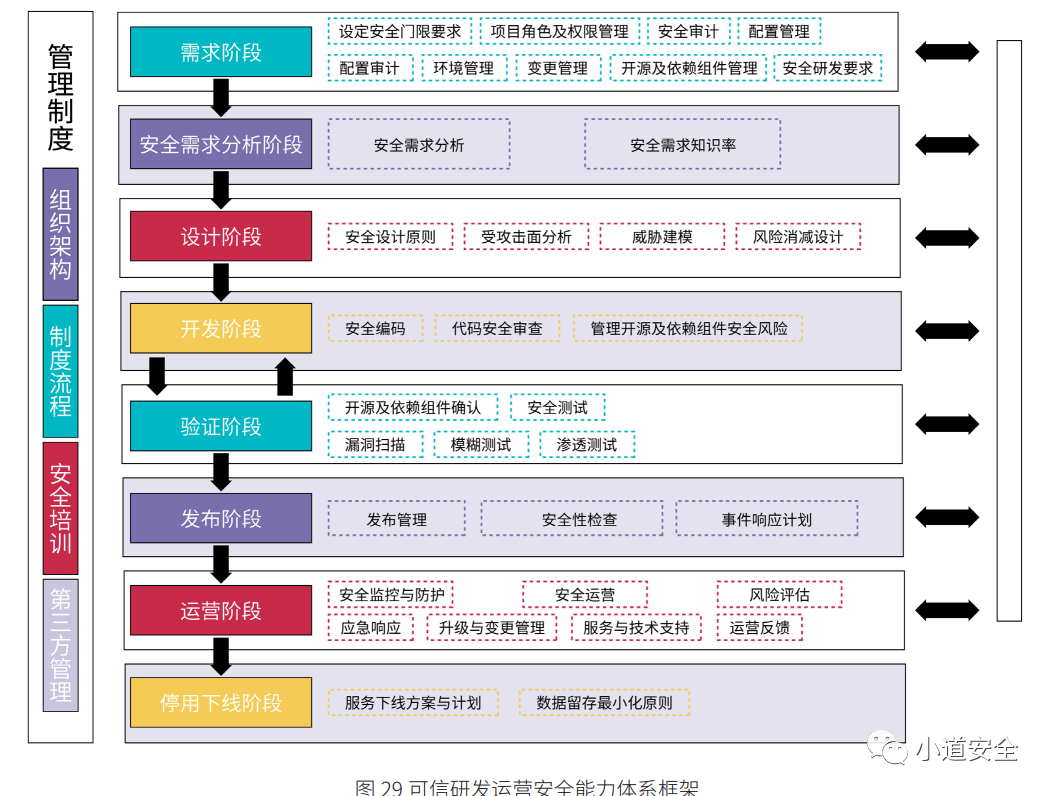 (7)运营反馈,定期收集运营过程中的安全问题,通过反馈平台统一收集、分类、全流程跟踪、解决、复盘等,以优化研发运营全流程。