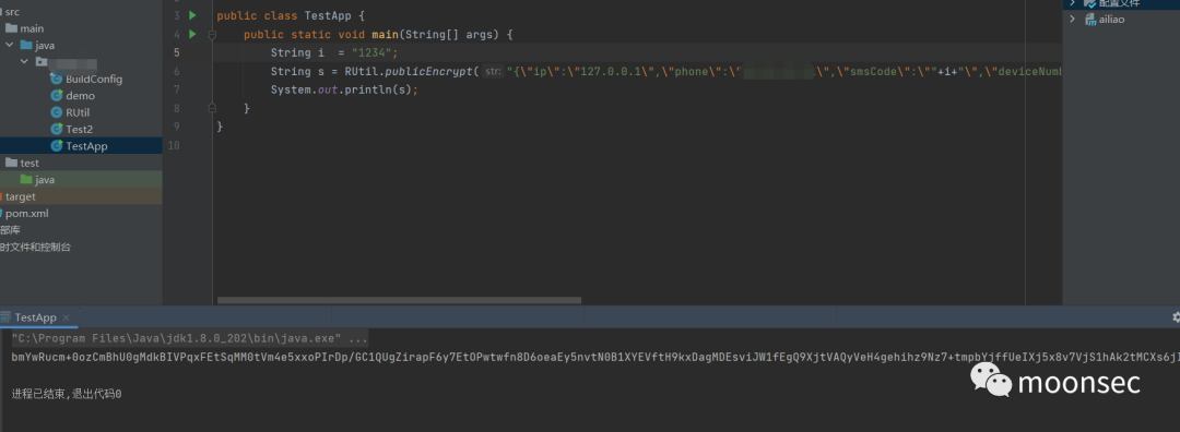 rsa 可以从 app中的加密类中copy下来 或者 自己编写 。这种标准的加密方式 网上也有很多工具类,本地修改一下即可。这里我就copy app类的加密类 再进行函数替换。
