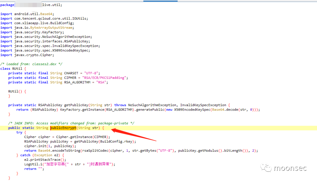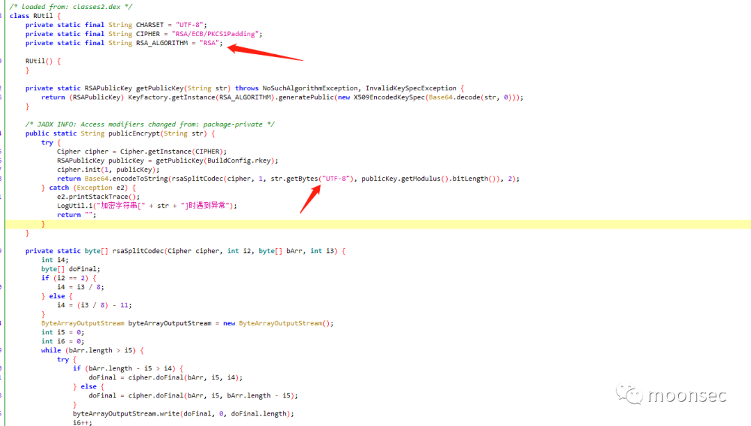 上面的rsa是公钥加密的 首先找到公钥。公钥一般都在app内 很容易找到。