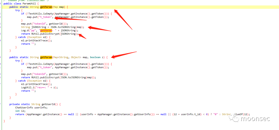 hashMap赋值的参数还是挺多的。hashMap被 ParamUtil.getParam(hashMap)处理。所以跟进getParam函数
