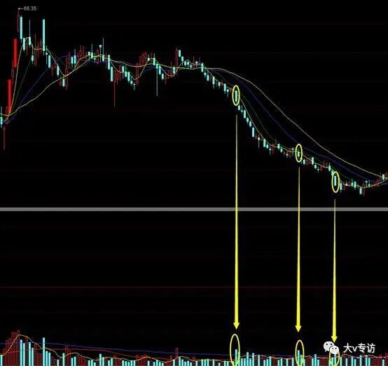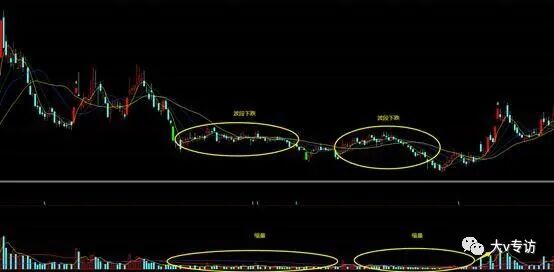 与波段上升相反,在一个波段下跌的过程中,随着成交量的不断萎缩,股价也是在延续下跌的趋势,不断走低的,没有量能就代表着针对该个股,一方面资金愿意去参与的意愿很低,也就是愿意“投票”的人很少,另一方面,就算里面少量的参与者,达成的共识,都是断续看空。一直到量能出现放大,打破原来看空的共识,看多的力量有所增大,价格的趋势才会发生逆转。