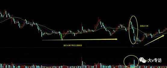 如果说股价在下跌趋势当中的放量,是助跌,引导加速趋势的下跌的话,那么当股价经历较长时间的下跌,并且量能在长期萎缩之后,如果出现恐慌式的放量,则此时的量能,将会引导股价发生反转。