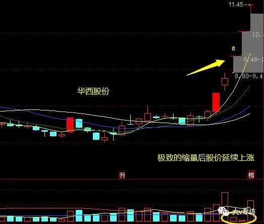 由于A股有涨跌停制度的限制,因此,一字的缩量涨停,意味着持筹者内心对股价的期望很高,惜售坚决,不愿意卖出手中的筹码,而同时,场外持币者也同样形成看好该股的共识,抢着购买,一方不愿卖,一方抢着买,导致持币者想买也买不到,造成无量涨停。所以,第二天的情况都往往有延续,持币者仍旧会继续追买,持筹者仍旧不愿卖,所以造成了股价连续涨停的情况。例如华西股份,一字涨停之后,趋势仍然在继续。