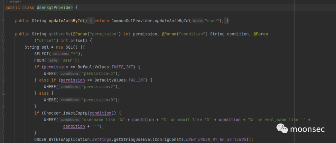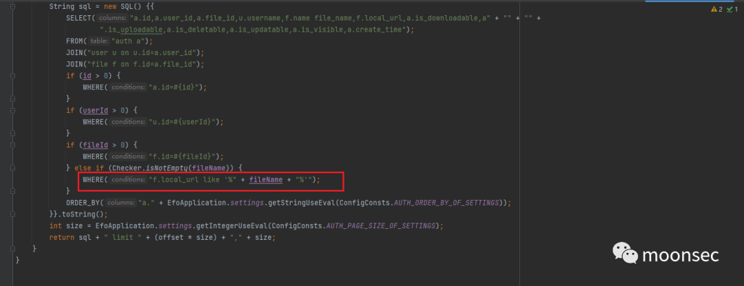 发现orderBy 参数都是字符串,无过滤且是通过字符串拼接方式进行的传参