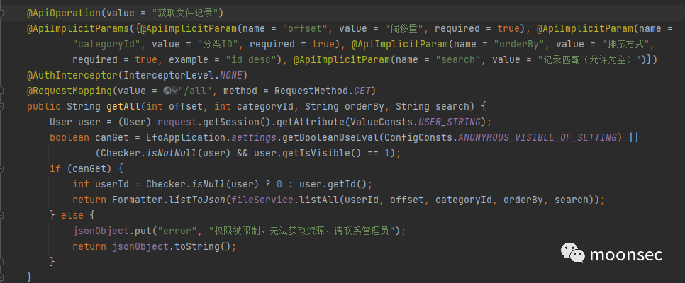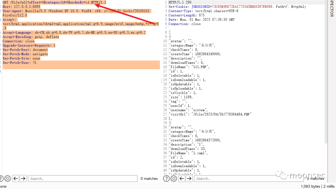 进入/file/all,在列出所有文件的地方传入参数 order by,并且没有做过滤,导致产生SQL注入漏洞,接口信息如下