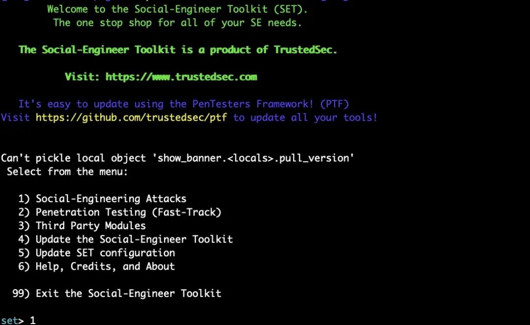 (2)使用Social-Engineer Toolkit进行钓鱼页面构造