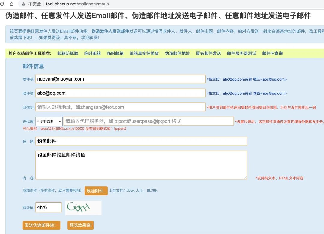 此外还可以尝试使用http://tool.chacuo.net/mailanonymous,在线进行邮件伪造
