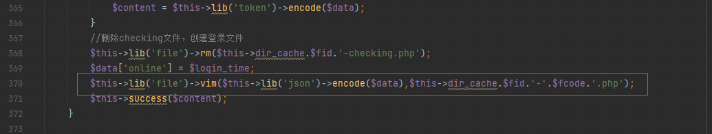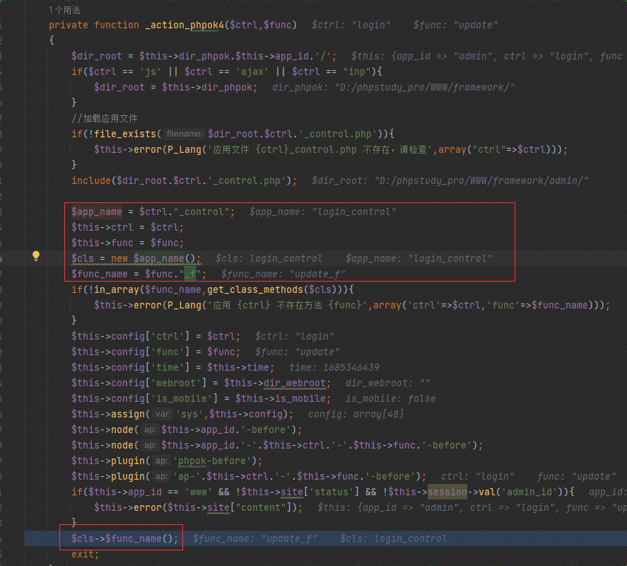 漏洞存在文件:framework/admin/login_control.php中的update_f,这个方法的最后调用了vim函数,