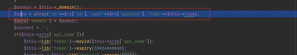 可以看到这里的$data是通过$rs['id'],$rs['account']和时间戳组成,继续追踪$rs