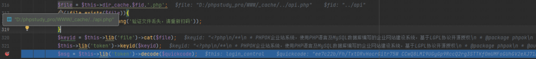 根据$msg = $this->lib('token')->decode($quickcode);我们查看framework/libs/token.php这个文件的decode方法