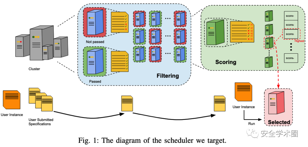 论文主要是针对filter-score云调度器进行攻击,filter-score调度器包括两个阶段:
