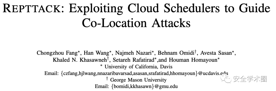 原文标题:REPTTACK: Exploiting Cloud Schedulers to Guide Co-Location Attacks原文作者:Chongzhou Fang , Han Wan