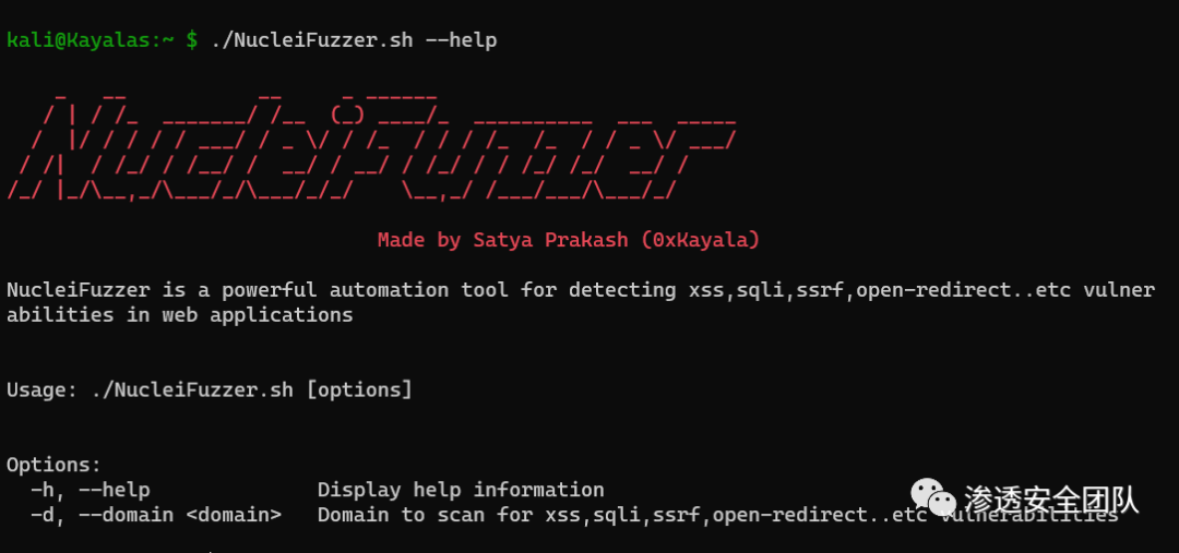 ./NucleiFuzzer -hNucleiFuzzer is a powerful automation tool for detecting xss,sqli,ssrf,open-redirect..etc vulnerabilities in web applicationsUsage: ./NucleiFuzzer.sh [options]Options:-h, --help Display help information-d, --domain <domain> Domain to scan for xss,sqli,ssrf,open-redirect..etc vulnerabilities