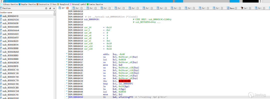 unsigned __int32 __fastcall xxx_crc32_le(unsigned __int32 a1, int buffer_idx_2, unsigned int a3){unsigned int crc32Value; // $a0unsigned int v4; // $a3int v5; // $a1unsigned int v6; // $a2_DWORD *buffer_idx_1; // $t1unsigned int i; // $t0unsigned int buffer_idx; // $a1unsigned int end_buf_idx; // $a3int buffer_value; // $v0crc32Value = _bswapw(a1);if ( (buffer_idx_2 & 3) != 0 && a3 ){++buffer_idx_2;while ( 1 ){--a3;crc32Value = crc_table4[HIBYTE(crc32Value) ^ *(unsigned __int8 *)(buffer_idx_2 - 1)] ^ (crc32Value << 8);if ( !a3 || (buffer_idx_2 & 3) == 0 )break;++buffer_idx_2;}}v4 = a3 & 3;v5 = buffer_idx_2 - 4;v6 = a3 >> 2;buffer_idx_1 = (_DWORD *)v5;for ( i = v6; ; --i ){++buffer_idx_1;if ( !i )break;crc32Value = crc_table7[(crc32Value ^ *buffer_idx_1) >> 24] ^ crc_table4[(unsigned __int8)(crc32Value ^ *(_BYTE *)buffer_idx_1)] ^ crc_table5[(unsigned __int8)((unsigned __int16)(crc32Value ^ *(_WORD *)buffer_idx_1) >> 8)] ^ crc_table6[(unsigned __int8)((crc32Value ^ *buffer_idx_1) >> 16)];}buffer_idx = v5 + 4 * v6;if ( v4 ){end_buf_idx = buffer_idx + v4;do{buffer_value = *(unsigned __int8 *)(buffer_idx + 4);++buffer_idx;crc32Value = crc_table4[buffer_value ^ HIBYTE(crc32Value)] ^ (crc32Value << 8);}while ( buffer_idx != end_buf_idx );}return _bswapw(crc32Value);}