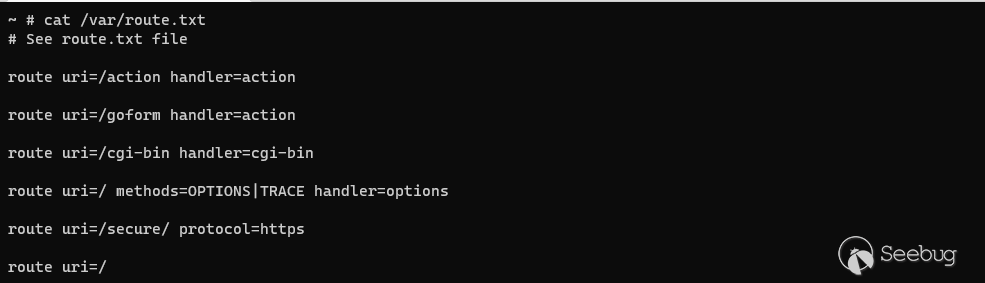 int __cdecl main(int argc, const char **argv, const char **envp){...if ( websOpen(webroot, route) >= 0 ){if ( websLoad(v11) >= 0 ){...if ( g_lan_ip ){memset(v18, 0, sizeof(v18));sprintf(v18, "http://%s:80,http://127.0.0.1:80", &g_lan_ip);v8 = (void *)sclone(v18);v6 = stok(v8, ", \t", v16);}else{v8 = (void *)sclone("http://*:80,https://*:443");v6 = stok(v8, ", \t", v16);}for ( haystack = (char *)v6; haystack; haystack = (char *)stok(0, ", \t,", v16) ){if ( !strstr(haystack, "https") && websListen(haystack) < 0 )return -1;}...}...}