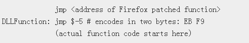 当修复的函数想要调用未修复版本的DLLFunction()时,它只需跳过DLLFunction()地址2个字节即可启动实际的函数代码