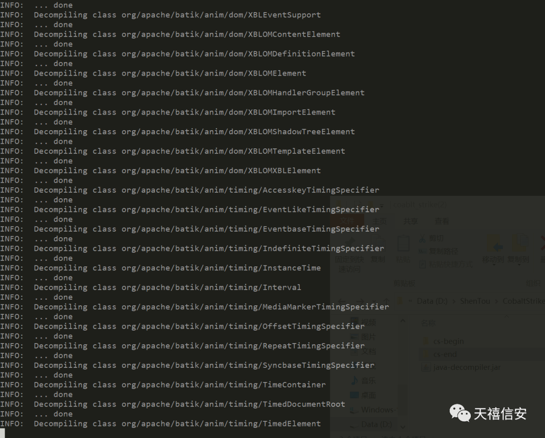 D:\ShenTou\CobaltStrike\coablt_strike(2)\cs-end# java -cp java-decompiler.jar org.jetbrains.java.decompiler.main.decompiler.ConsoleDecompiler -dsg=true cs原版路径 二次开发目录