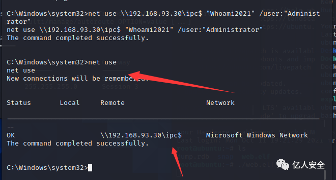 net use \192.168.93.30\ipc$ "Whoami2021" /user:"Administrator"